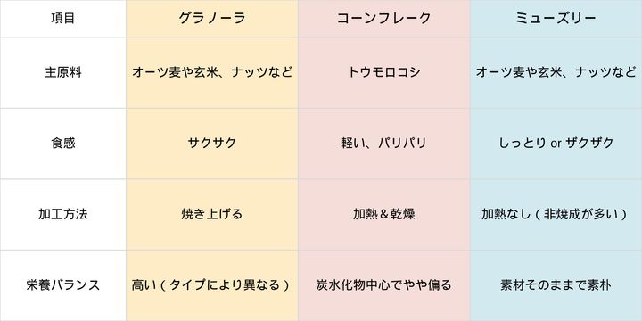 「腸にやさしいグラノーラを選ぶには、以下のポイントをチェックしましょう」