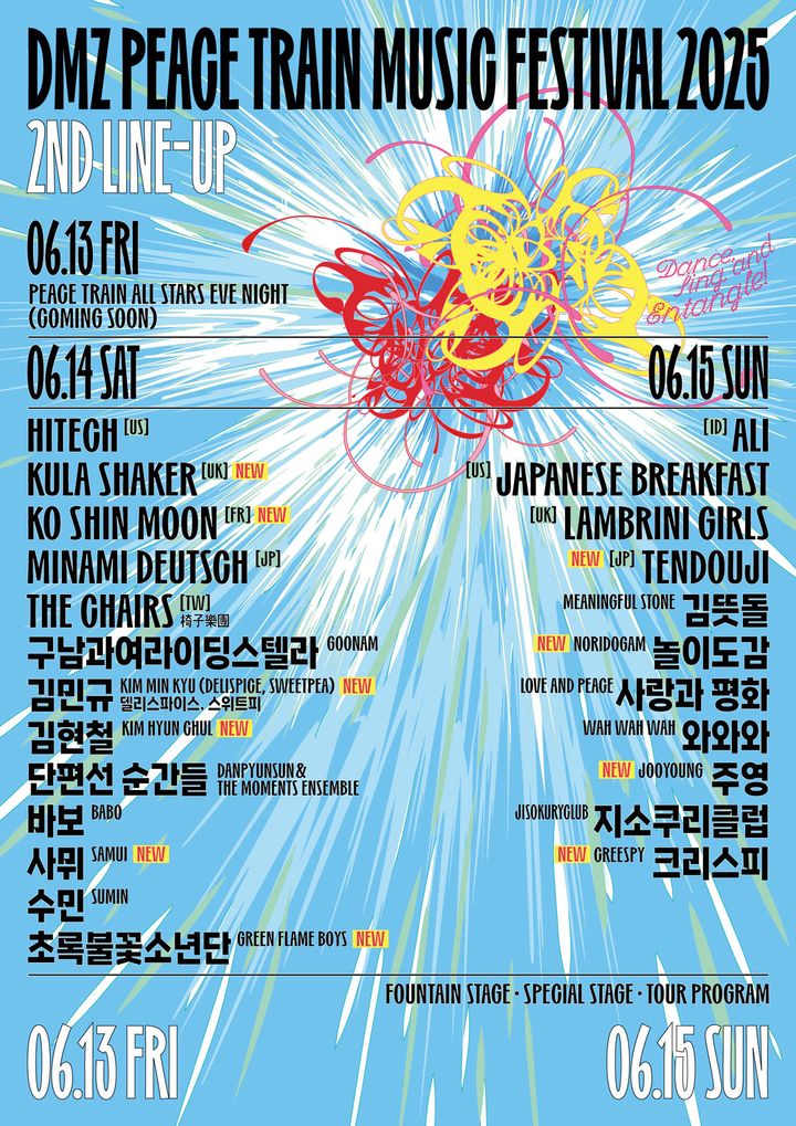 DMZとは非武装地帯の意。6月13日〜15日、江原道鉄原(カンウォンドチョルウォン)の非武装地帯で開催される平和の歌を歌う音楽祭。国内外からアーティストが集結。日本からはTENDOUJI、南ドイツが参加する。Instagram:@dmzpeacetrain