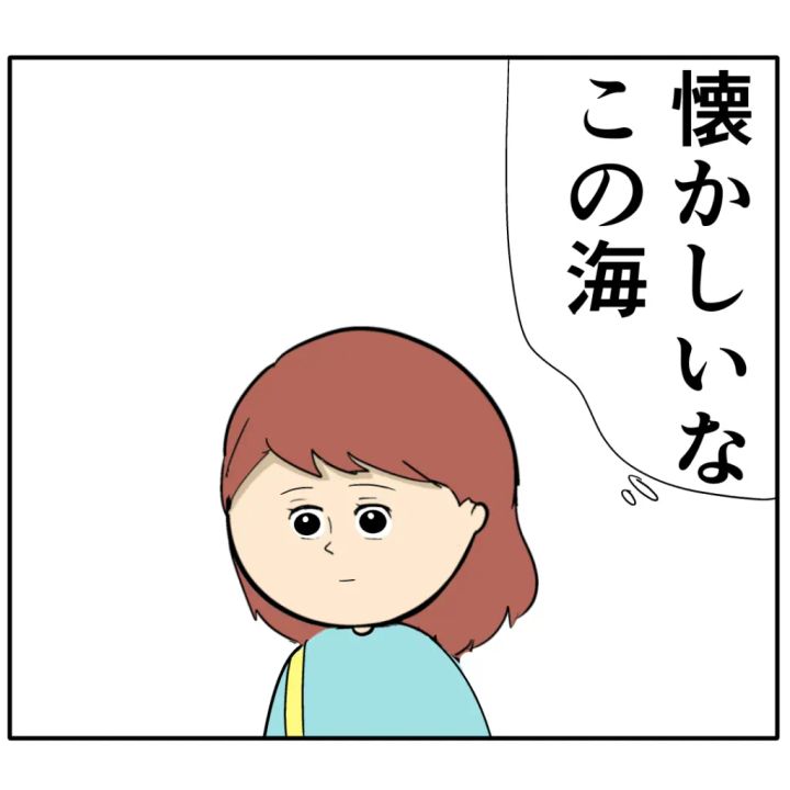 「懐かしいな、この海」めいさんは思い出の海を見て懐かしく思います。