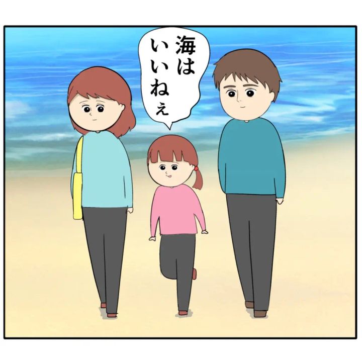 めいさんは今、娘のあかりちゃんと元夫のろみ緒さんと海に来ています。以前、あかりちゃんが家族3人で行きたいと言っていた海です。時間はかかりましたが、願いが叶ったあかりちゃんは「海はいいねぇ」と嬉しそう。