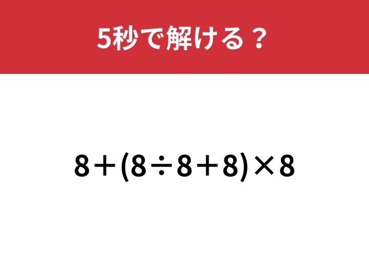 ほとんどの大人が迷う!?「8+(8÷8+8)×8」5秒で解ける?