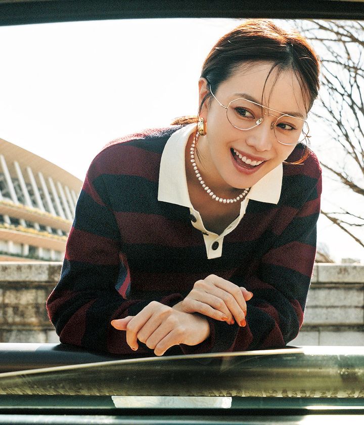 ラガーニット¥29,700(ザ シンゾーン/シンゾーン 表参道本店)タイトスカート¥168,300(マディソンブルー)バッグ¥270,600(トッズ/トッズ・ジャパン)パンプス¥135,300(ロジェ ヴィヴィエ/ロジェ・ヴィヴィエ・ジャパン)メガネ¥55,000(アイヴァン 7285/アイヴァン 7285 トウキョウ)ピアス¥74,800〈ミチ ウィルウェイ〉ネックレス¥14,850〈エイチアッシュ〉(ともにフォーティーン ショールーム)