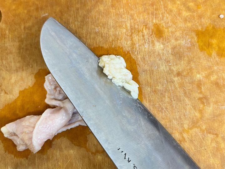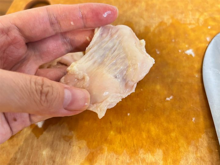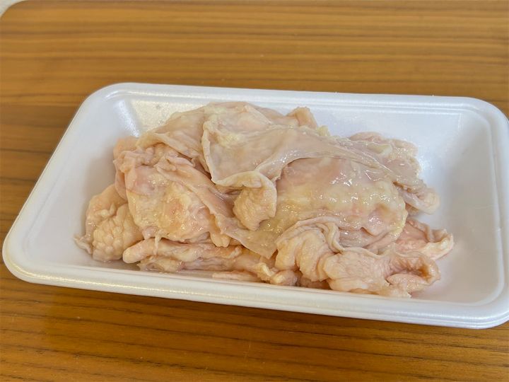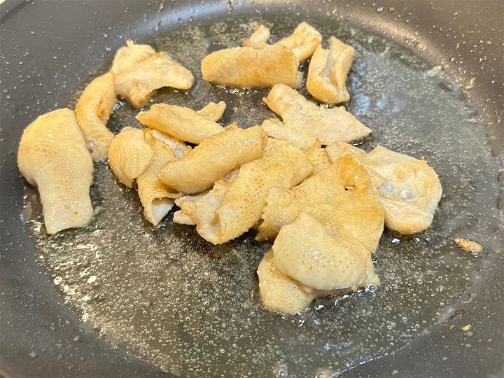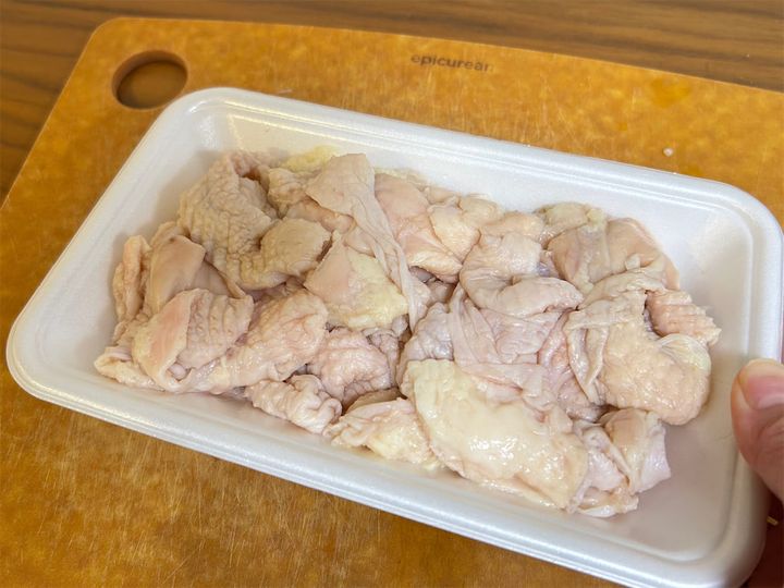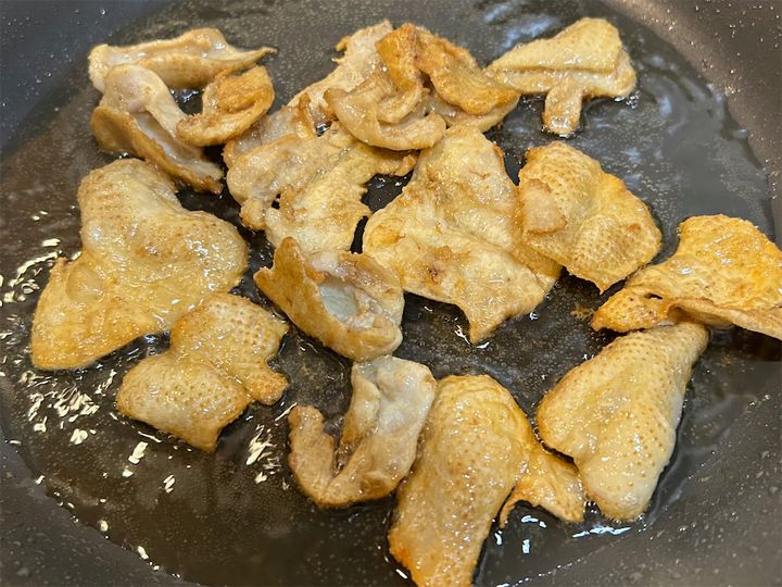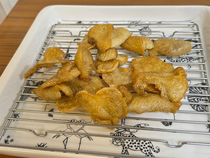 3. 炊き込みご飯を作っている間に、鶏皮を調理しましょう。レシピ動画と同じように、分量たっぷりめに用意しました。
