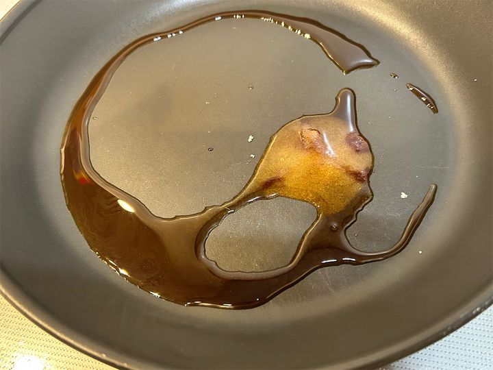 フライパンに、しょうゆ、みりん、砂糖、コチュジャンを入れて、フツフツと泡が立つまで加熱します。