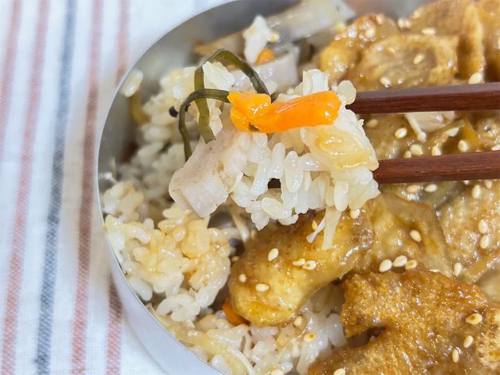 これは筆者がいつも実践していることなのですが、混ぜるのは具材だけにしておくのがおすすめ。お米に具材を混ぜ込んでしまうと、炊き上がりにムラができやすくなるみたいです。