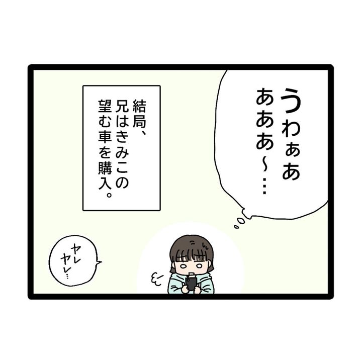 「うわぁああああ~・・」と思わず呟く私。結局、兄はきみこの望む車を購入したのでした。