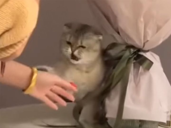 恋人に渡すはずの花束をネコが独占!? 猫パンチが止まらない