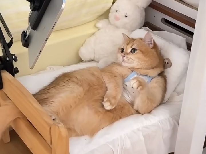 猫専用ベッドにテレビまで! 愛が詰まったお部屋でくつろぐ猫さん