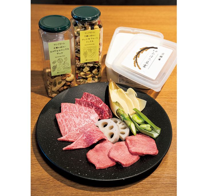 京都の「小多福」で扱う京味食品さんのおぼろ豆富は京都で撮影があると必ず購入する逸品。風味・旨みが抜群で、1パックが結構大きいのですがペロッと食べられてしまいます。幡ヶ谷にある「焼肉はたがや」さんのお野菜&お肉もエネルギー源。サンクゼールのミックスナッツに入っている甘バナナチップスもお気に入り。