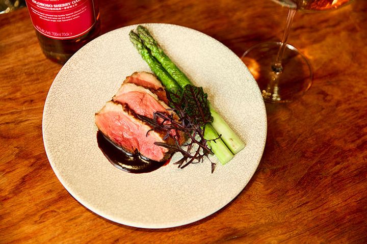 いま、まさにそれを言わんとしていたところ。心の中を見透かされ、いっそ、気分がいい。そして、カバランのオロロソシェリーをひと舐めして、鴨肉でソースを拭いとるようにして口へ運ぶ。