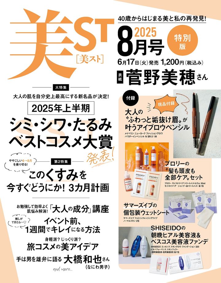 美ST 2025年8月号ネット予約スタート【表紙は菅野美穂さん&正門良規さん(Aぇ! group)初表紙】