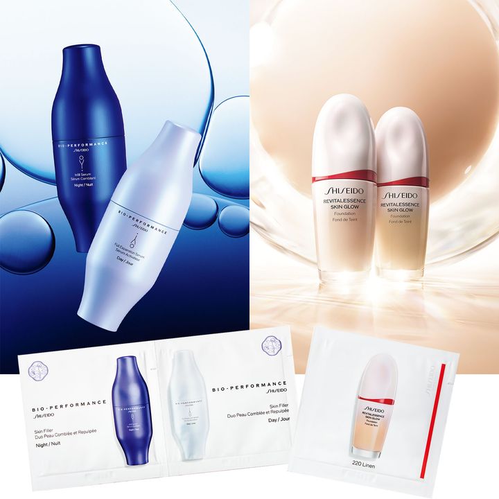 編集部でも読者の間でもバズりにバズった「うるおいツヤツヤセット」をお試しできます。SHISEIDO ビオパフォーマンス スキンフィラー<朝用美容液・夜用美容液>、エッセンス スキングロウ ファンデーション 220 パウチ各1包
