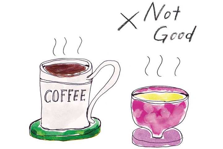 コーヒーや緑茶などに多く含まれるカフェインは尿の排泄を促す利尿作用が高いです。カフェインは膀胱粘膜を刺激しやすいので、過活動膀胱の人は控えてノンカフェインの飲料に。