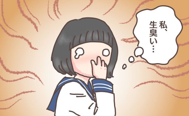 初潮を迎え、初めて生理用ナプキンを着けて学校に行った私。しばらく過ごしていると、何だか自分が生臭いように感じ……。