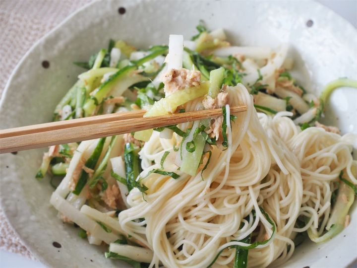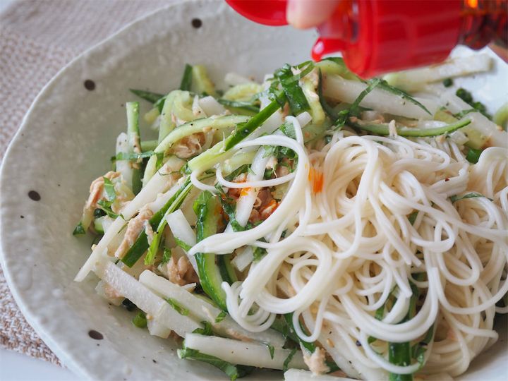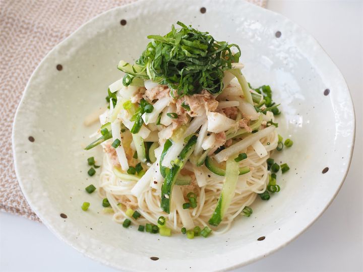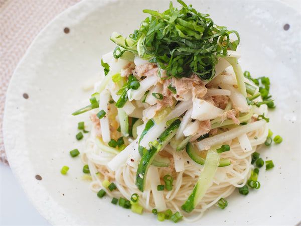 【そうめんだけどポリポリ食感♪】野菜たっぷり♡ツナ和え大根の食感がご馳走の「サラダ素麺」作ろう!