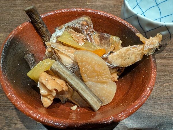 やっぱり頼むなら一番人気の、鯛塩らぁ麺「寿」(1150円)を注文。 気になるサイドメニュー「鯛のあらだき」(500円)も一緒に注文。 まずは「鯛のあらだき」の登場。