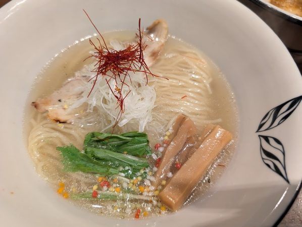カラフルなあられがトッピングされた上品な見た目のラーメン。 臭みが全くない鯛の旨味がしっかりと感じらるスープ。 ストレート麺はつるっもちっとしてめっちゃ美味しい。