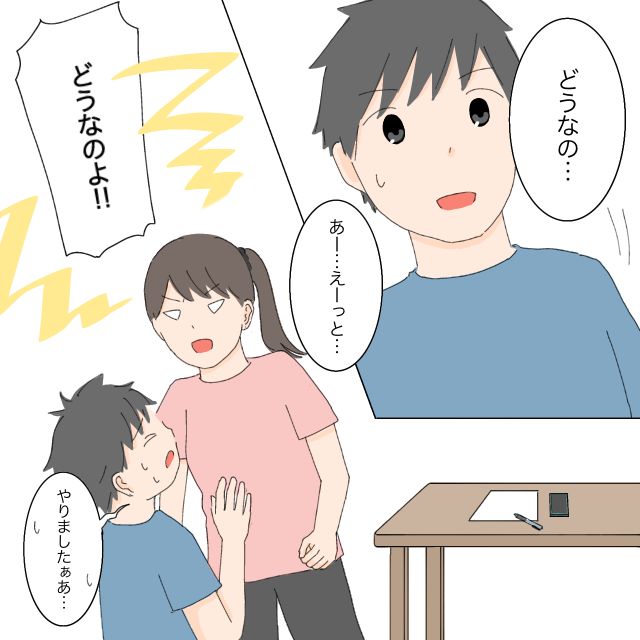 「どうなの・・どうなのよ!!」夫に詰め寄ると、「あー・・えーっと・・」と言葉を濁していたものの、最後には「やりましたぁあ・・」と白状しました。