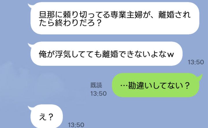 「専業主婦だから浮気されても離婚できないだろ」開き直る夫。でも――「実はあなたの勘違い♡」だって