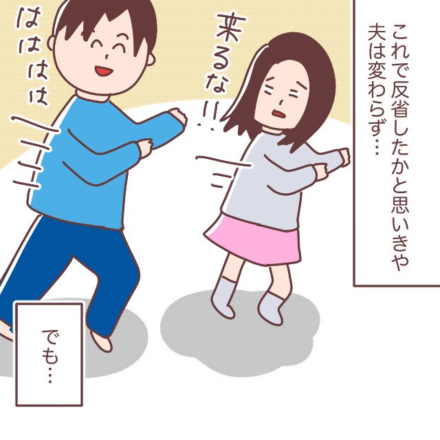 その後、これで反省したかと思いきや、夫は全く変わらず・・。「来るな!!」と走り去る娘の後を「ははは」と笑いながら追いかける様子を見ながら呟く私。でも・・
