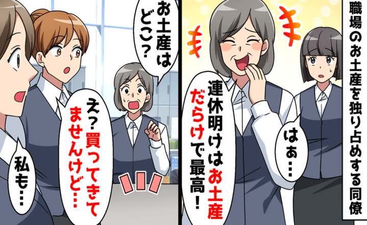 3. お土産を独り占めするお局「連休明けはお土産だらけで最高!」能天気お局に現実を突き付けた結果