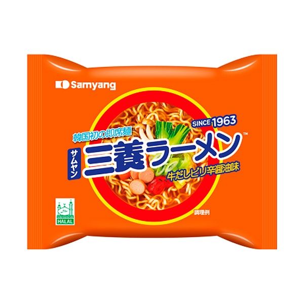 1963年の誕生以降、愛され続けている韓国初のインスタントラーメン!スープは、ピリッと辛さが効いている牛だし風味。