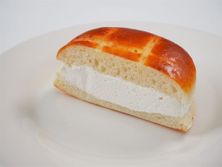 パンは半円型で、表面にはしっかり焼き色がついていて、見た目からして香ばしさを感じます。中には、濃厚な生クリームがぎっしり。食べてみると、まずふわっとした軽さに驚き、噛むほどにパンとクリームが口の中で一体となり、すっととろけるような不思議な口どけ。