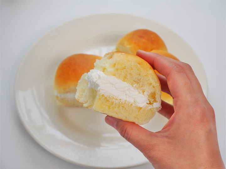ふわふわなのにしっかりと密度のある生地は、3つの牛乳パンの中でも1番“食べ応えがある“タイプ。中のクリームは、ミルキーでこってりとしたコクがあり、ひとくちで満足感が広がります。