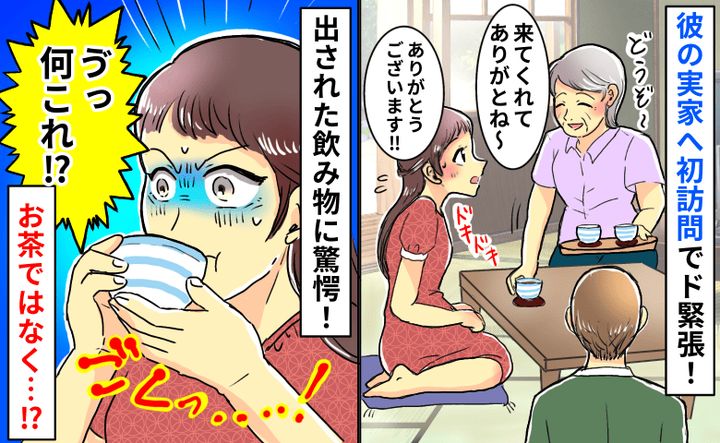 3. 彼の実家へ初訪問で試練!「お茶じゃない…!?」出された飲み物を吐き出しそうに!中身はまさかの!?