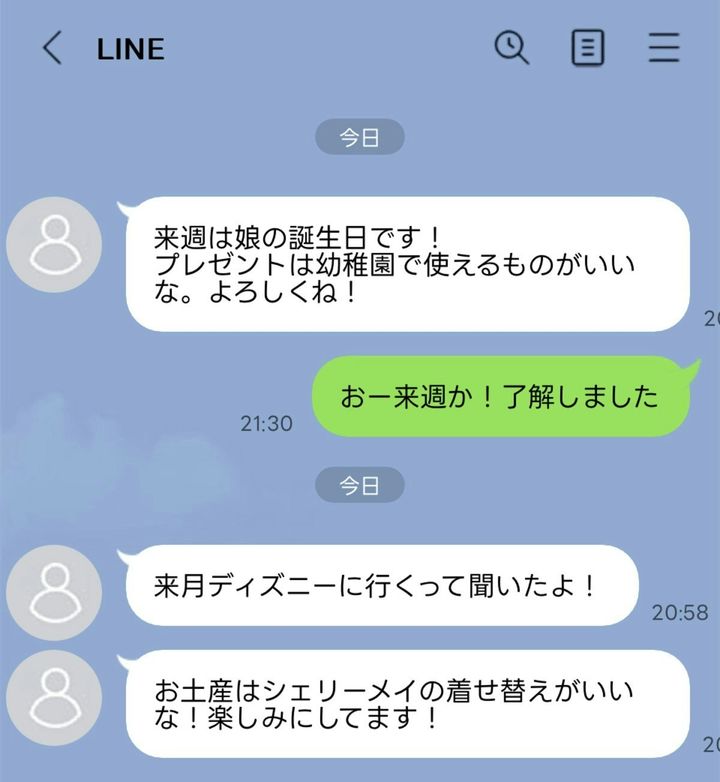 姪の誕生日が近づくと旦那にLINEが来る…