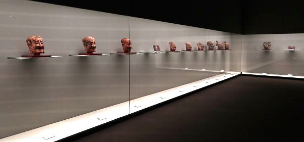 国宝 伎楽面 展示風景 東京国立博物館蔵 法隆寺宝物館 ※個々の伎楽面の展示期間は東京国立博物館ウェブサイト等でご確認ください。