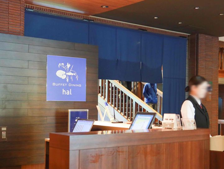 こちらも大人気のビュッフェダイニング「hal(ハル)」は、結婚式場としても使われる「水の時計」と同じエリアの建物内にあります。営業開始の6時半にうかがったところ、すでにたくさんの人で賑わっていました!