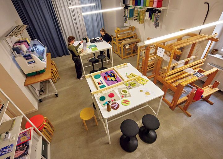 3Dプリンターをはじめラグ作りのタフティング機、糸作りのための組み紐機、そして染めやスクリーンプリントのウェットラボなど、機材やスペースのレンタルも可能。それらを使ったワークショップも開催する。