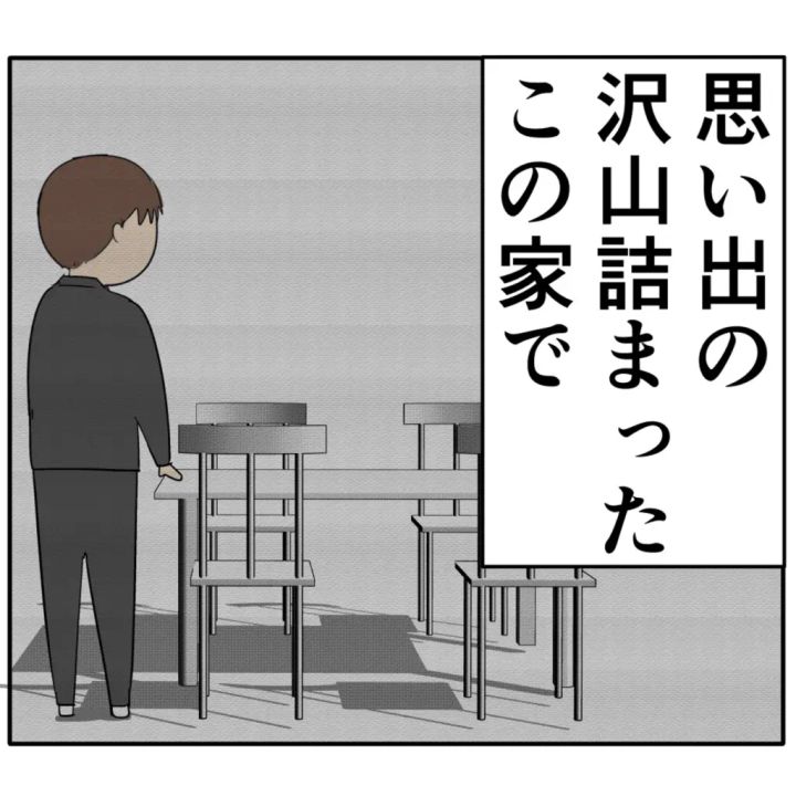 家族3人の思い出がたくさん詰まった家。「ただいま」と言ってももう誰も返事をしてくれません。時は戻らないのだという現実が突き刺さりますね。