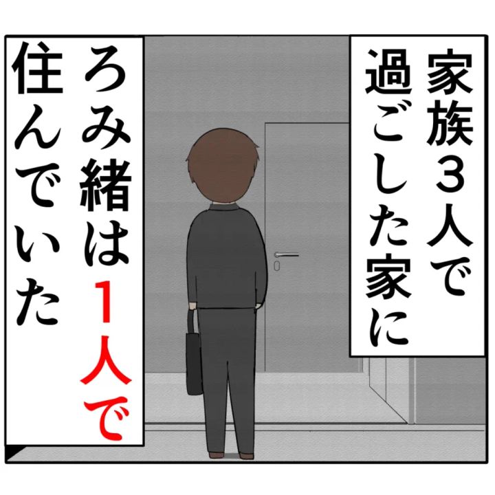 妻と娘と3人で過ごした家に、たった一人で「ただいま・・・」と会社から帰宅するろみ緒さん。もちろん、返事をしてくれる人は誰もいません。