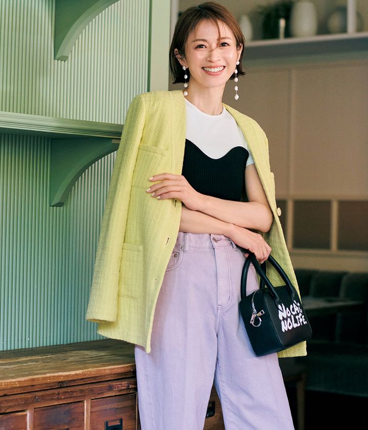 【ジャケット】の普段着使いがすっかり定着化し、今季はカラーものが続々お目見え。直線ラインがきりっと引き締めてくれるから、大好きピンクやイエロー、着映える華やかカラーもぜひトライを!