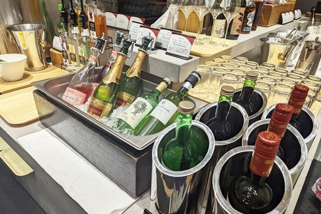驚いたのはアルコールも追加料金なしで飲み放題であること。自分で好きな量を注ぐことができるので、お酒に強くなくても「洋食にはワイン」、「和食には梅酒や日本酒」と、料理や気分に合わせて、少しずつさまざまなお酒を楽しむことができるんです。