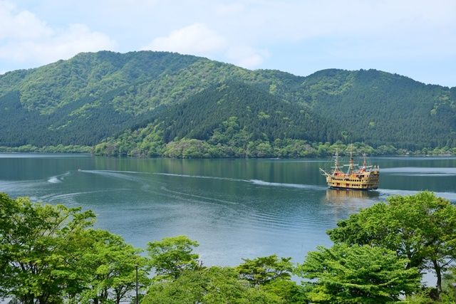 海賊船やボートが芦ノ湖を行き交い、空模様が変化し、水面が絶えずゆらぐ……まったく同じ瞬間がない自然の風景を楽しみながら、のんびりとお湯に浸かったり、おいしい食事に舌鼓を打ったりしていると「この瞬間ここにいられることはなんて幸せなんだろう」という気持ちが湧き上がってきました。