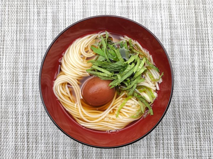 筆者は残念ながら動画のようなフタ付きのお椀は持っていないので、一番近そうな汁椀を用意しました。目の前に置いてみるととても見た目がよく、これをすっと目の前に出されたらきっと驚いて一瞬言葉を無くすに違いないと思いますし、何よりとんでもなくおいしくて思わず微笑んでしまいました。暑い夏に、麺も汁もキンキンに冷やして食べてみたいそうめんです。
