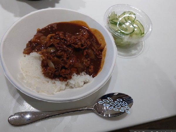とっても美味しそうなハヤシライスの完成です。給食スタイルでみんな列に並び、食べられる量だけ自分でとっていきます。冷蔵庫で冷やしていたサラダもおいしそう!