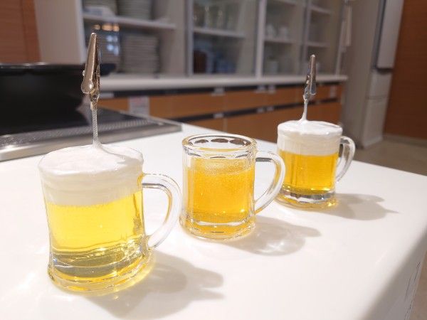 午前中はクッキングをしてみんなでお昼を食べて、午後からはお楽しみのワークショップがあります。午前午後と盛りだくさんの楽しさー! 「ぽっかぽっかアンサンブル」の講師の先生に教えて頂きました! 食品サンプル「ビールのメモスタンド」作りです!みんな真剣に先生の作り方を学んでいます。