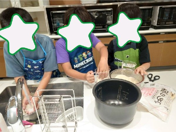 お米を10合量って、洗って水をセットする!10合なんて私炊いたことありません!すごい量です!