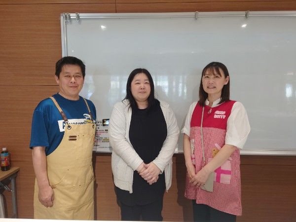 今回講師をしてくださった先生方です。子供料理教室のあやこ先生(写真真ん中)と、ワークショップの先生「ぽっかぽっかアンサンブル」のお二人。みなさんとても丁寧に教えてくださりました。