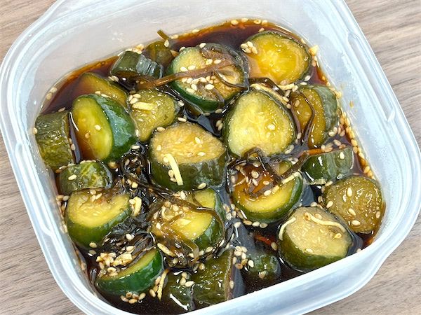 市販の「きゅうりのキューちゃん」もしょうゆの味ががっつりくるし、ポリポリ食感としょうがのアクセントがあるところはよく似ています。市販のものには昆布は入っていないので、見た目がちょっと違いますが、昆布が入っていると味に深みが出ておいしいですよ。また、自家製だと大量に作れるのもいいところですね。冷蔵庫に入れて、1週間は日持ちがするそうです。本当にやめられないおいしさです。簡単に作れるので、ぜひ作ってみてはいかがでしょうか。