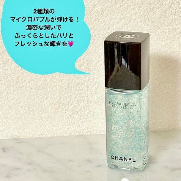「イドゥラ ビューティ マイクロ セラム インテンス」の注目ポイントは、シャネルの美容液で初めて、2種類のマイクロ バブルを配合していること。目にも涼やかなブルーのバブルにはカメリア オレオ エキスを、クリア バブルにはカメリア オイルをIN。肌にのばすと2種のバブルが弾けて保湿成分を放出。濃密な潤いで包み込み、ふっくらとしたボリュームのある肌に。さらに、シリーズ共通のカメリア由来成分やヒアルロン酸が肌のバリア機能をサポート。バランスの整った、フレッシュで輝きを放つ肌へと導いてくれます。