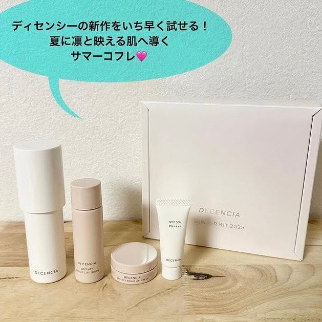 ディセンシア サマーキット 2025 ¥7,920(ディセンシア)内容:ディセンシア ホワイトF/L コンセントレート 現品・36mL[医薬部外品]、同 フローレス UV プロテクター SPF50+・PA++++・ミニサイズ、同 ディセンシー ブライトリフト ローション20mL [医薬部外品]、同 ブライトリフト クリーム ミニサイズ [医薬部外品]