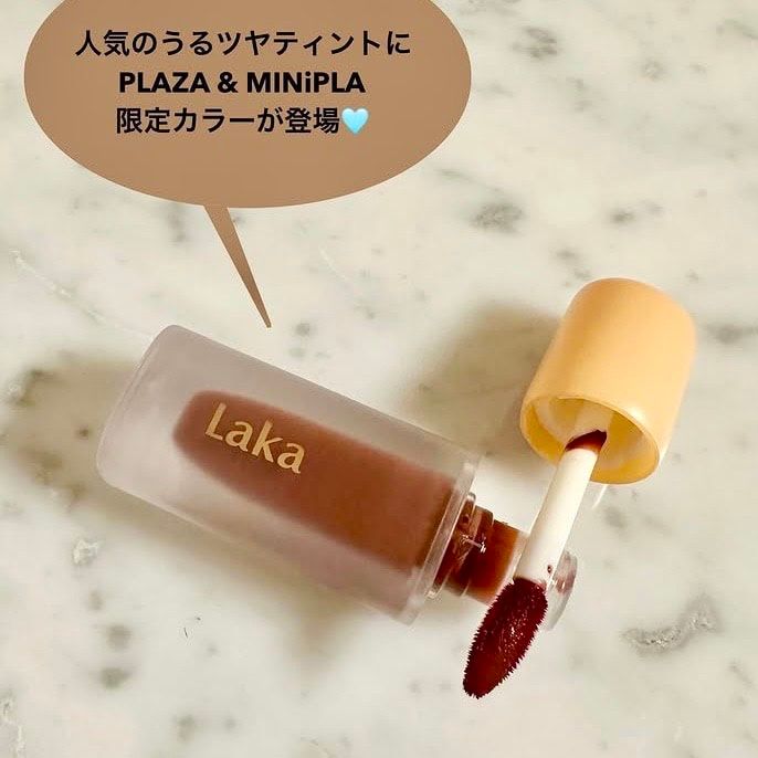 そこで気になったもののひとつが、「Laka フルーティーグラムティント」。時間が経ってもプルンと潤うツヤリップが続く、もともと人気のアイテムなのですが、PLAZA・MINiPLA限定カラーが出たんです。 展示会からずっと目をつけておりまして、やっと発売されたので早速GETしてきました。