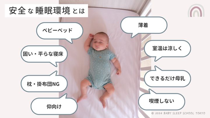 A.「以下の4つを実践して『安全な寝床』にするだけでもかなり改善すると思います。あのおくるみが…あのぬいぐるみが…など不安な材料がないことが大切です。別の部屋で寝ている人は、ベビーモニターもおすすめです」