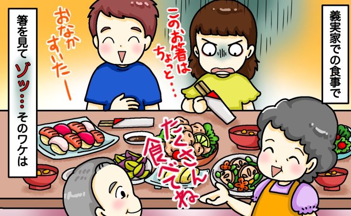 「え!食べられない…」初めての義実家宿泊で出された箸にゾワッ。夫の“直球発言”に救われたワケは