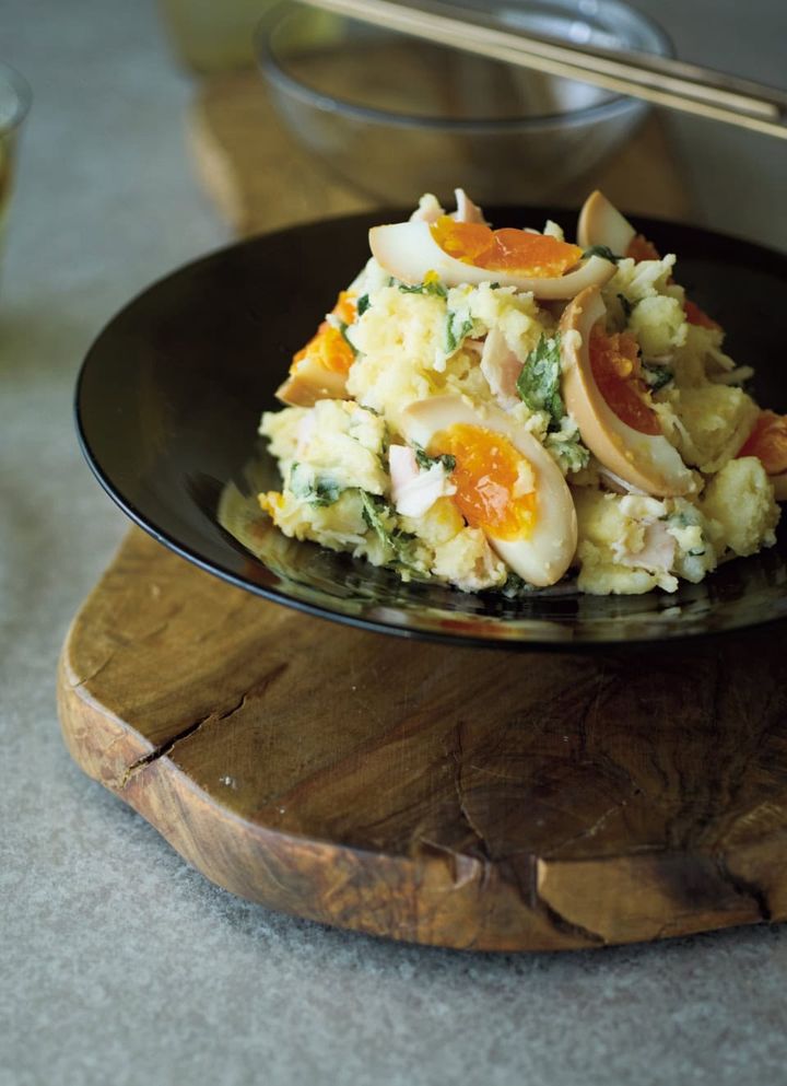青しそ入りの ポテサラって和風で美味♡『味玉とハムの和風サラダ』